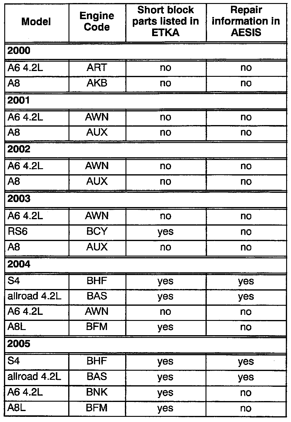 ^ Repair Manual now includes Repair Group 13 information for some 4.2L V8 engines (see appropriate Repair Manual section for engines listed below).