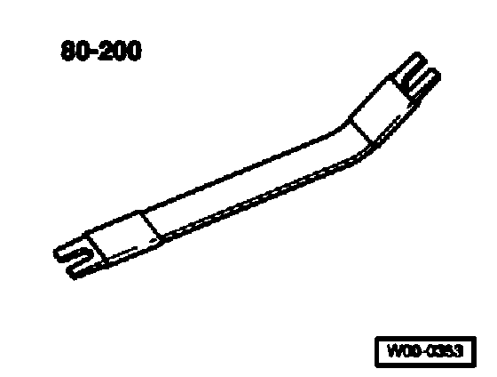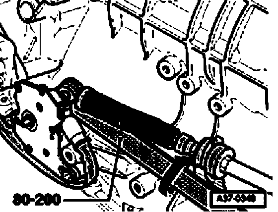 ^ Pry off selector lever cable with special tool 80-200 from lever and selector shaft -arrow-.