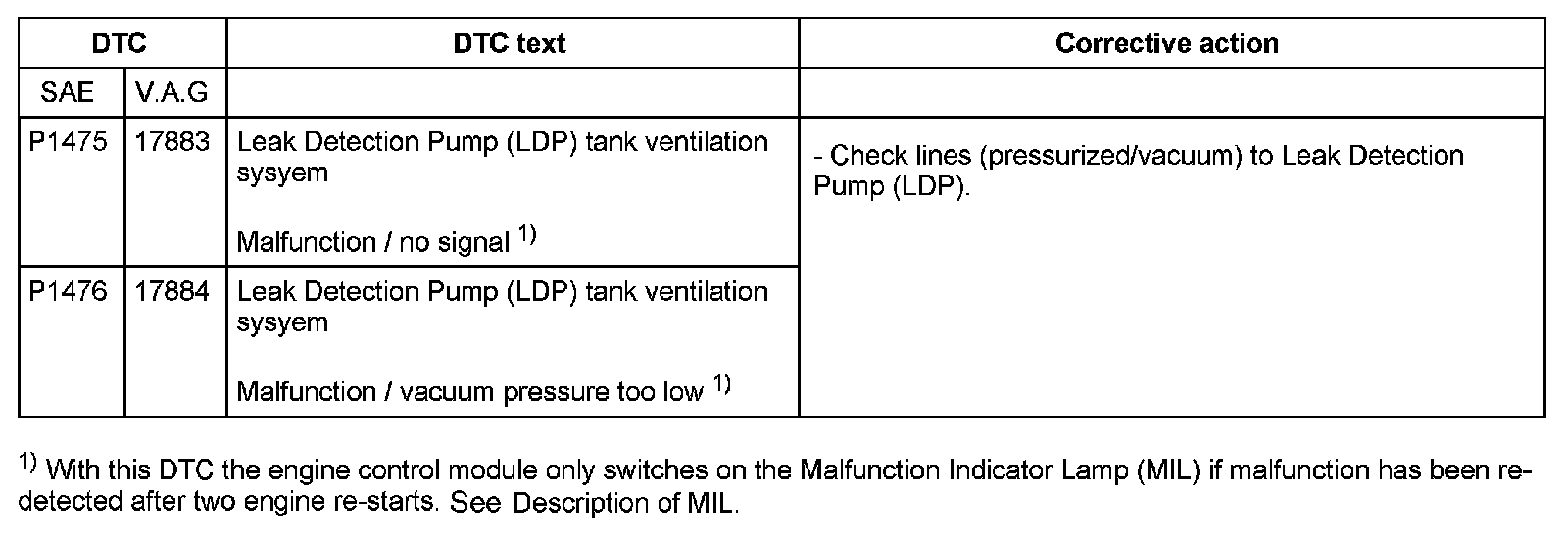 DTC P1475 - P1476: