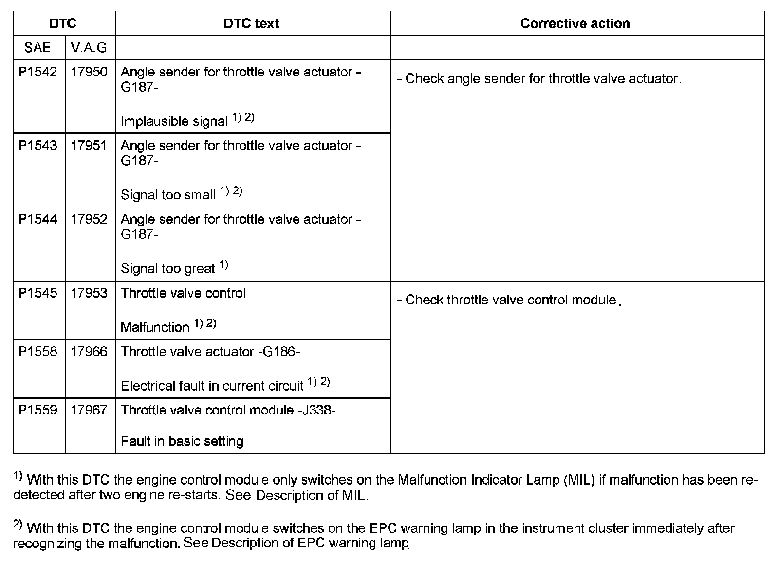 DTC P1542 - P1559: