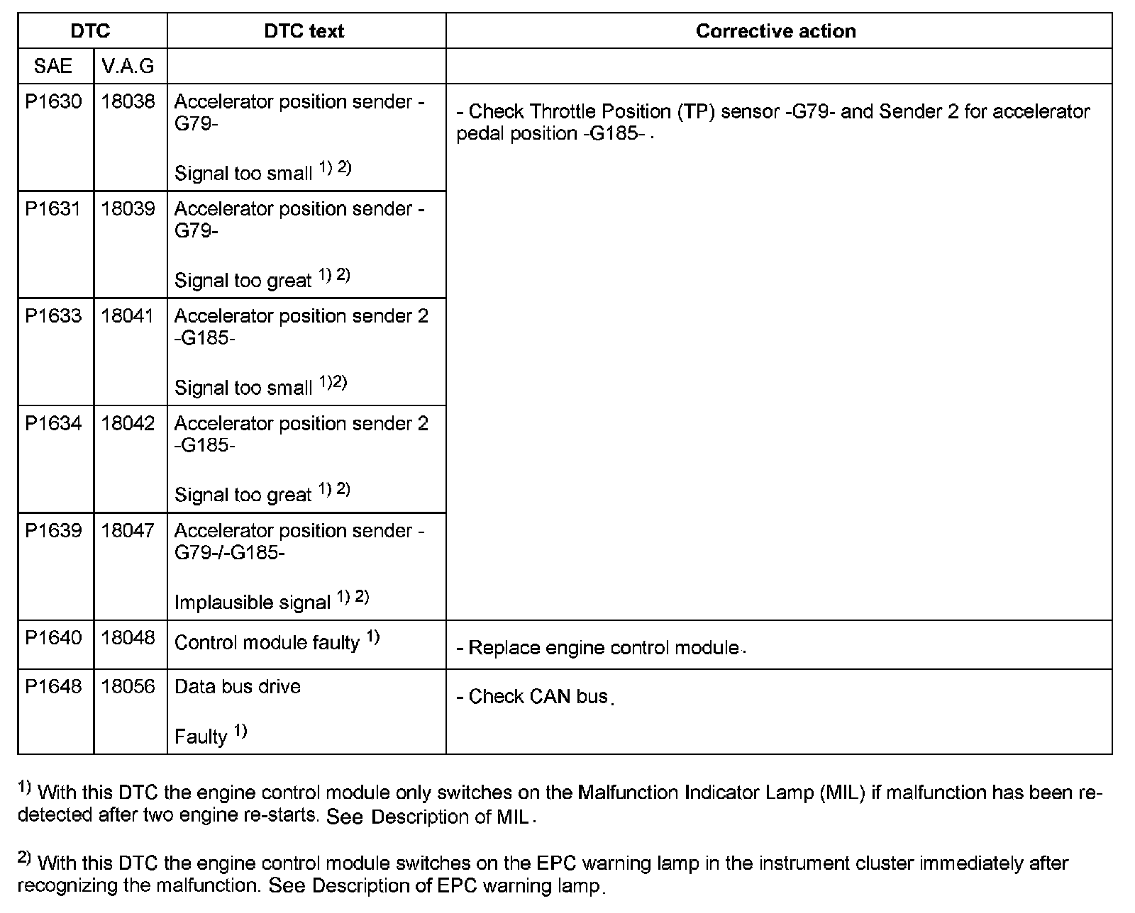 DTC P1630 - P1648: