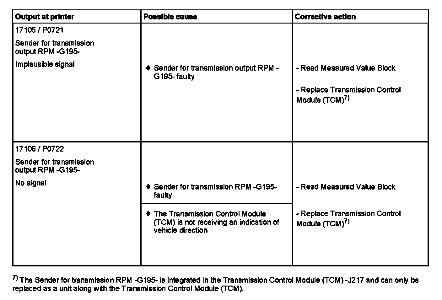 DTC 17105 / P0721