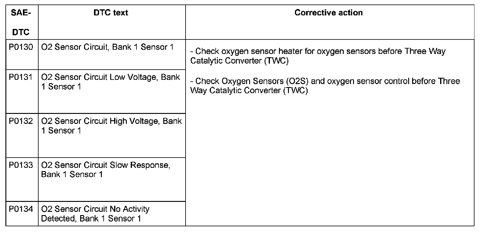 DTC P0130 - P0134: