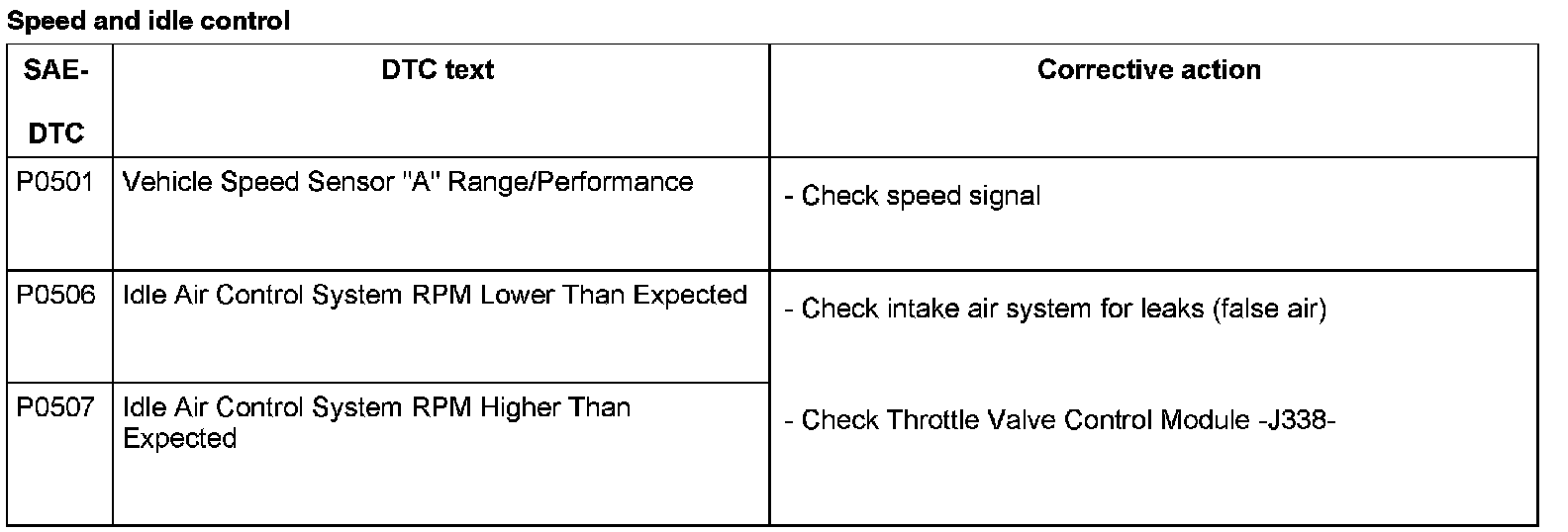 DTC P0501 - P0507: