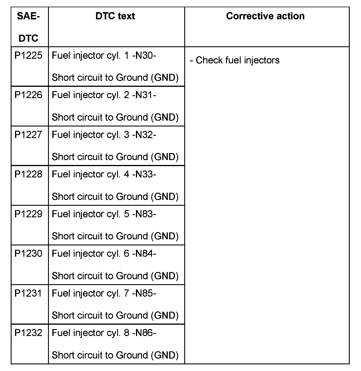 DTC P1225 - P1232: