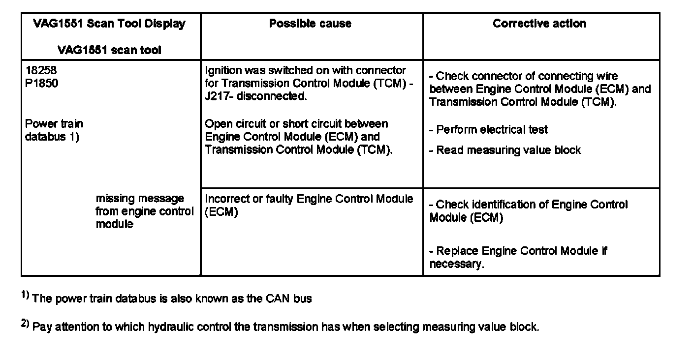 ^ The transfer of data and information between the Transmission Control Module (TCM) and the control modules that communicate with the Transmission Control Module (TCM) occurs via a so-called CAN bus. All information signals are carried via 2 wires.