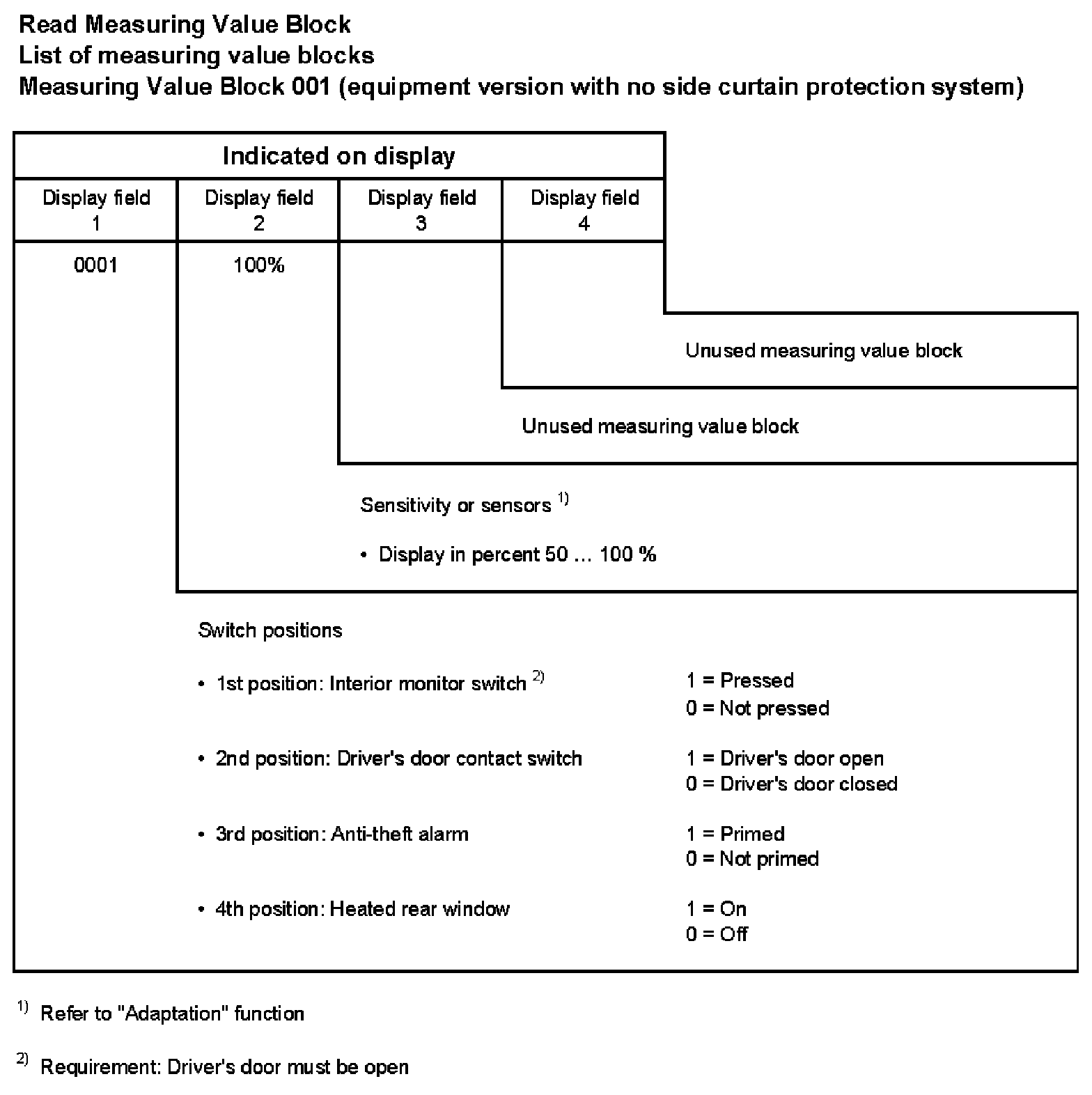 Measuring Value Block 001 (equipment version with no side curtain protection system)