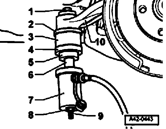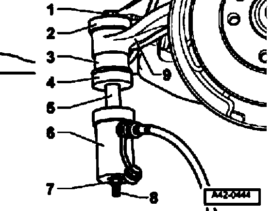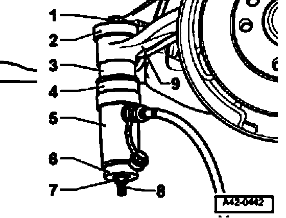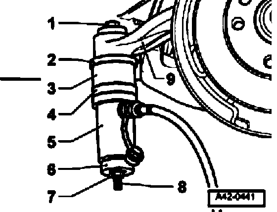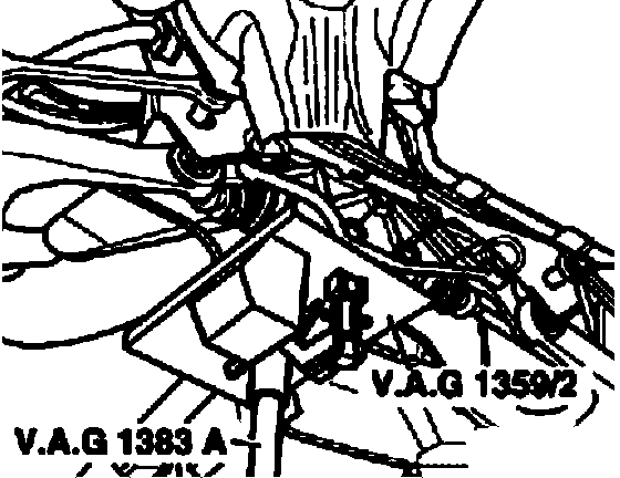 ^ Use engine/transmission jack VAG 1383 to carefully lower subframe by approximately 5 cm.