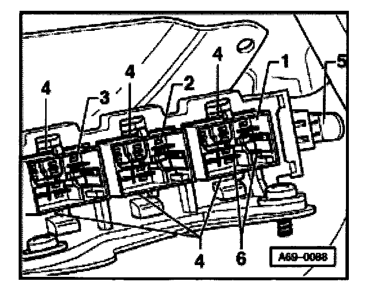 - Remove wires -4- (4x) from chambers 5 and 6 (for "belt fastened" detector) and chambers 1 and 2 (for "seat occupied" sensor - passenger side only) or for belt buckle switch (in some countries - driver's side only).