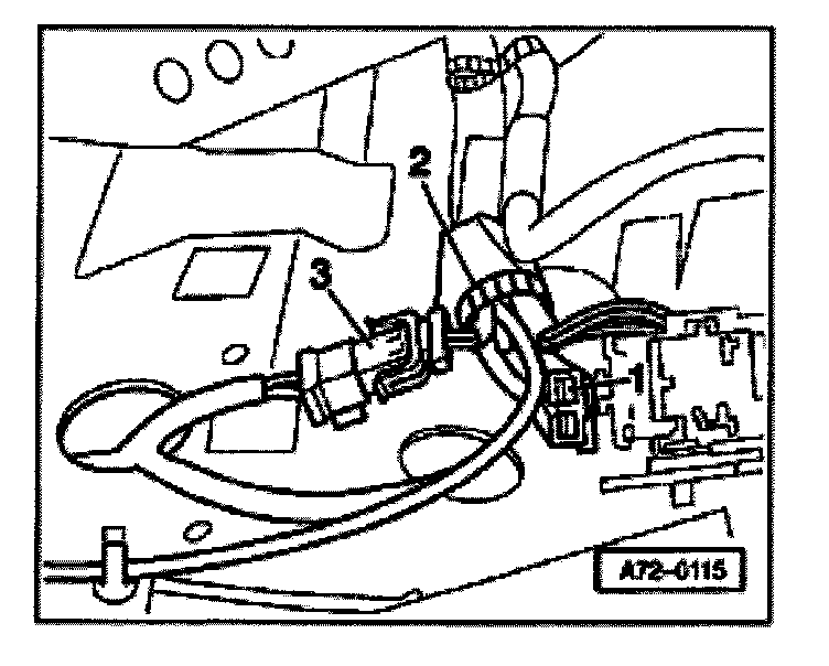 - Using a screwdriver, pry out retainer hooks A- for connector housings -1-, -2- and -3-.