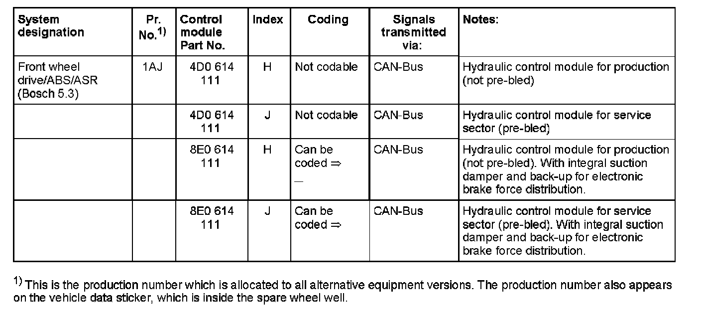 1) This is the production number which is allocated to all alternative equipment versions. The production number also appears on the vehicle data sticker, which is inside the spare wheel well.