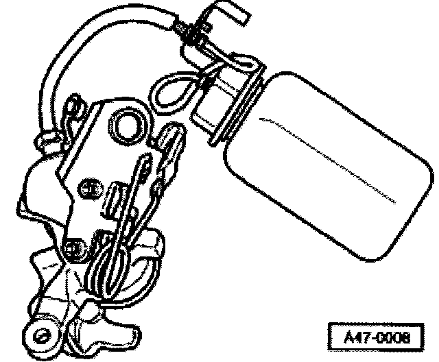 - Open bleeder valve and fill with brake fluid using standard bleeder bottle until brake fluid flows out of threaded hole (brake hose connection) without bubbles. Close bleeder valve.