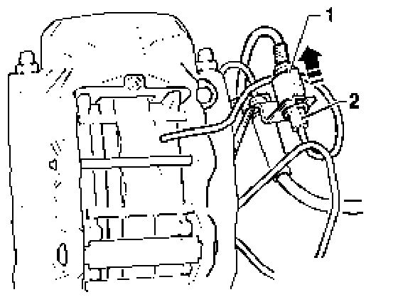 - Detach connector -1- from brake pad wear indicator.