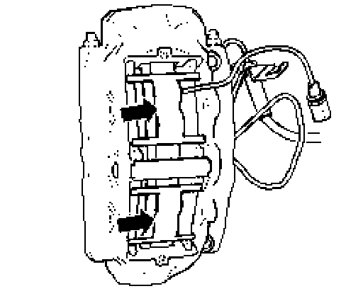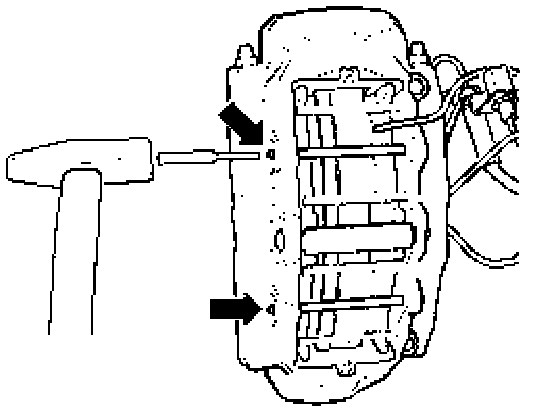 - Drive out pad retaining pins (arrows).