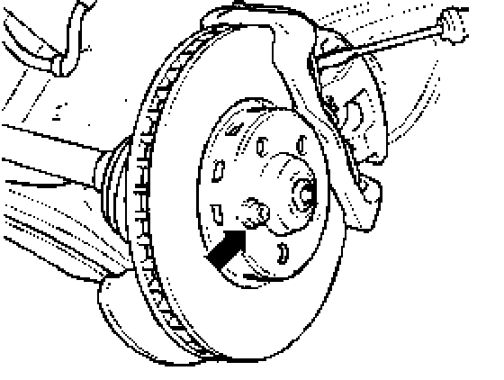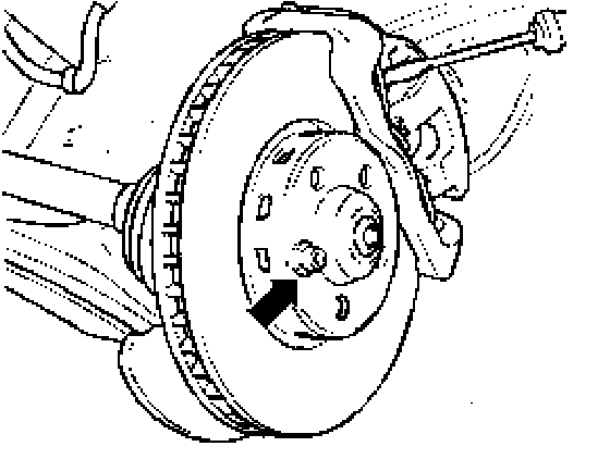 - Secure brake disc with a wheel bolt, see (arrow).