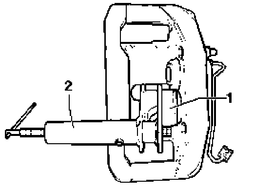 Note: Press piston back into caliper housing using resetting tool before inserting new brake pads. Before pushing back the piston, draw off brake Fluid out of the brake Fluid reservoir with a bleeder bottle. Otherwise, especially if reservoir has been topped off, Fluid will overflow and cause damage.