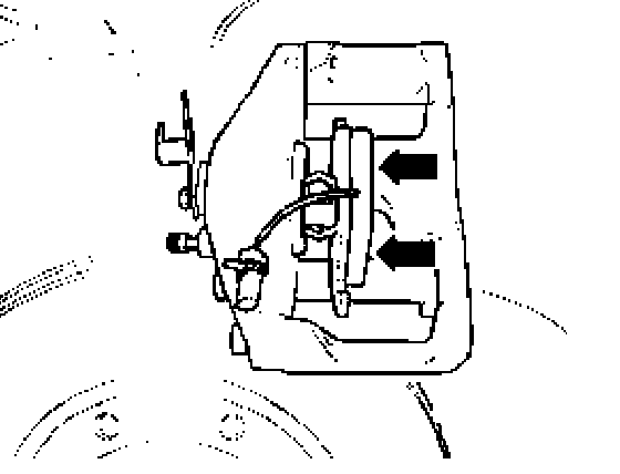 ^ Retaining spring must be pressed under brake carrier after it is inserted in both holes. If the spring is improperly installed, the brake caliper cannot adjust to compensate for wear on the outer brake pad. This will cause the brake pedal travel/ to increase.