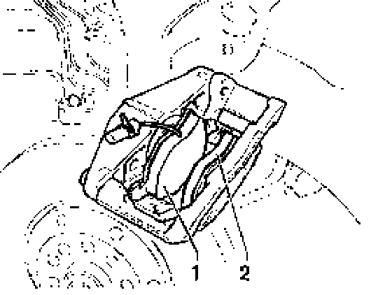 - Insert brake pad with retaining spring and wear indicator into brake caliper housing.