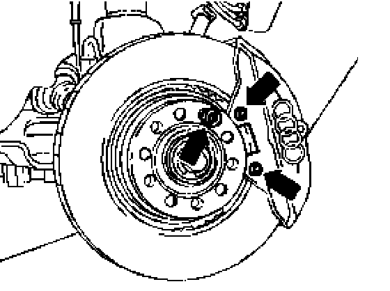 Note: If re-using brake pads, mark them so that they can be installed in their original positions to prevent uneven braking.