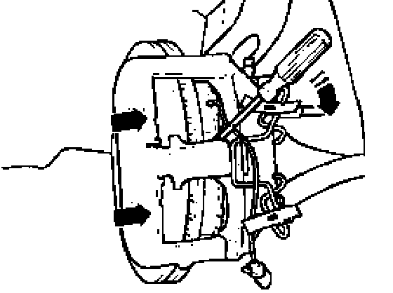 Note: Before pushing back piston, siphon some of the brake Fluid out of the brake Fluid reservoir. Otherwise, especially if reservoir has been topped off, Fluid will overflow and cause damage.