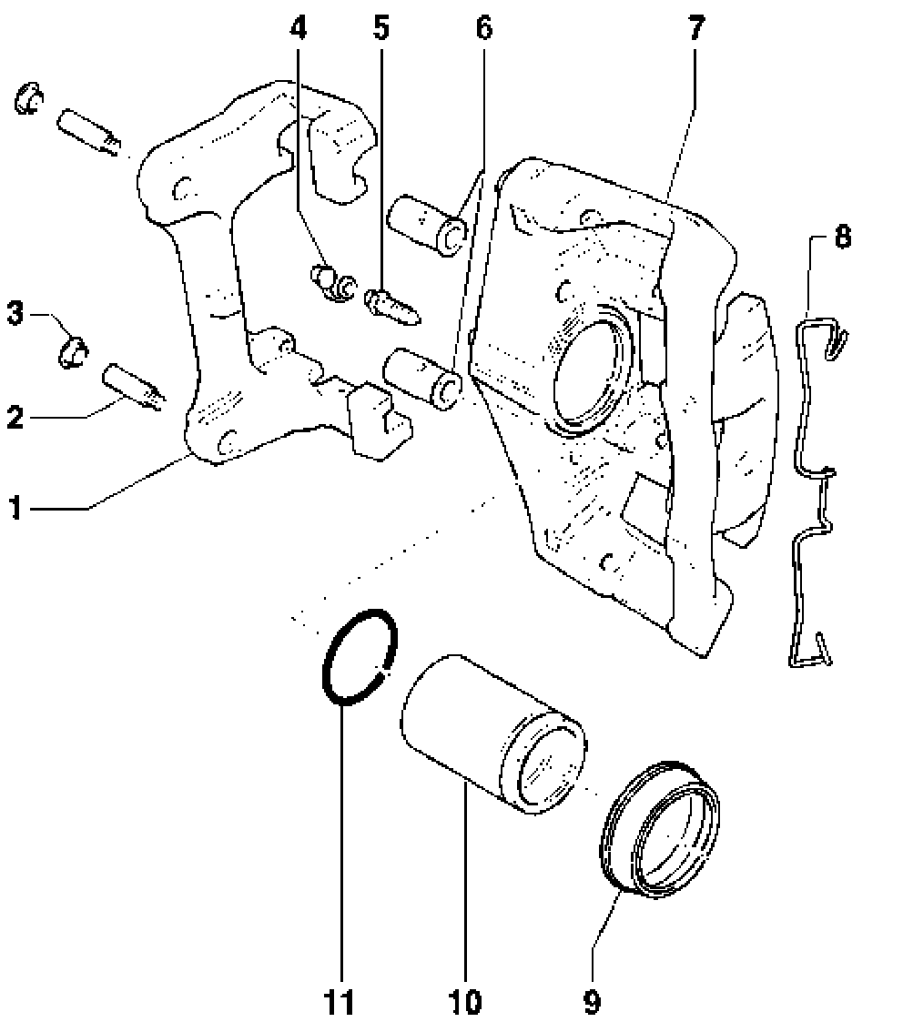 ^ Engage on both studs of brake caliper housing and on the outer pad retaining spring.