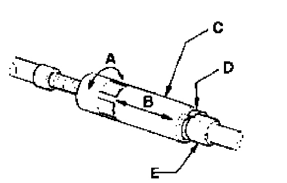 - Counter-hold hex -E- using 13 mm open end wrench and turn adjusting nut-C- in until stop.