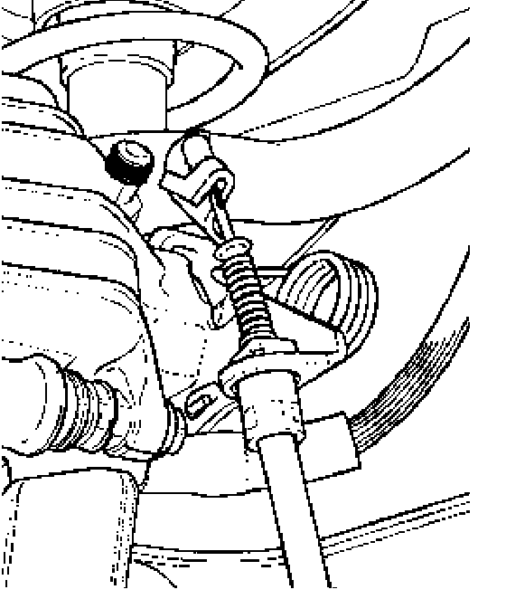 - Remove retainers from parking brake cable on rear axle beam.