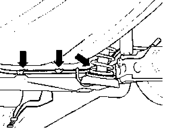 - Secure parking brake cables to rear axle beam and install in retainers on underbody.