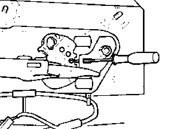 - Using screwdriver, press parking brake cable in direction of parking brake lever and push ball out of retainer.