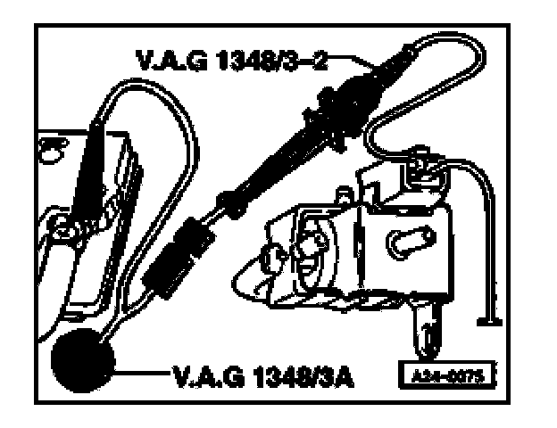 - Connect second contact of valve with remote control VAG 1348/3A, adapter lead VAG 1348/3-2 and auxiliary cable.