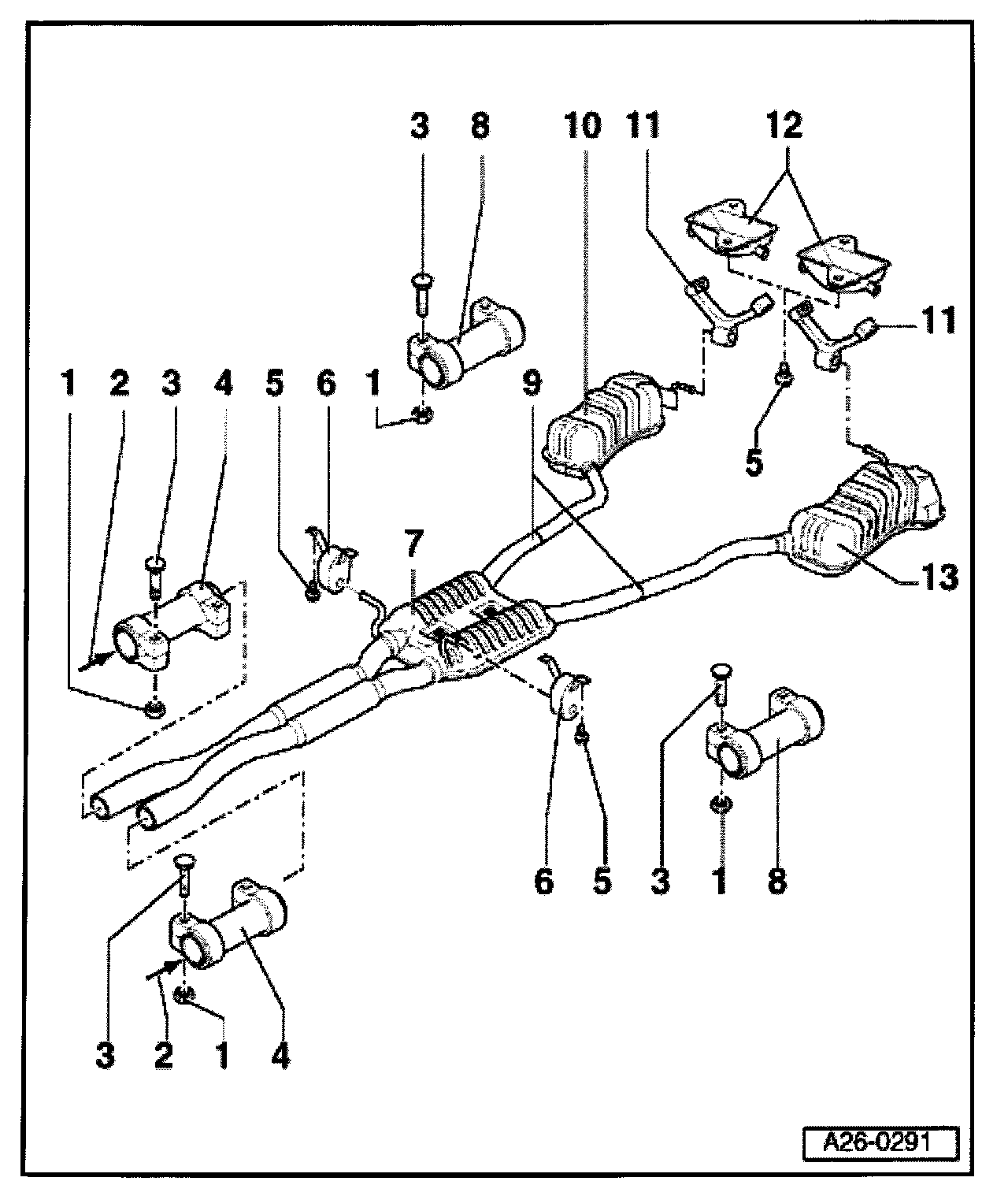 Fig. 1 Separating point between center and rear mufflers