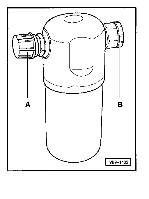 - Do not remove caps -A- and -B- until ready to install new accumulator.