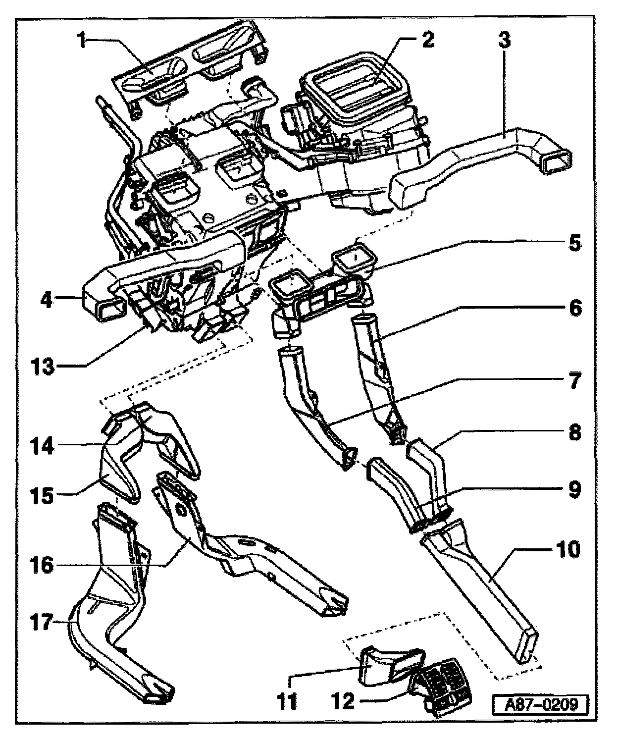 4 - Air duct to left instrument panel vent