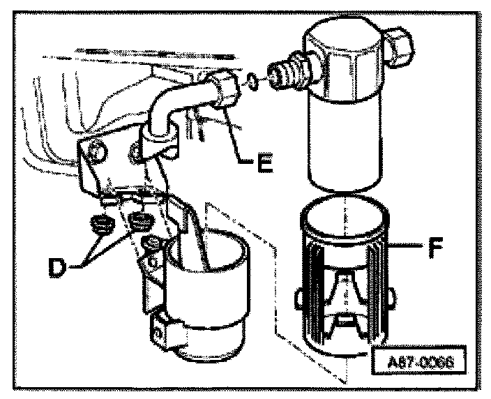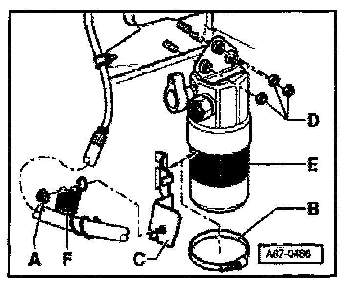 - Replace O-rings -E- (17.2 mm x 1.8 mm) and -F- (16.7 mm x 1.8 mm).