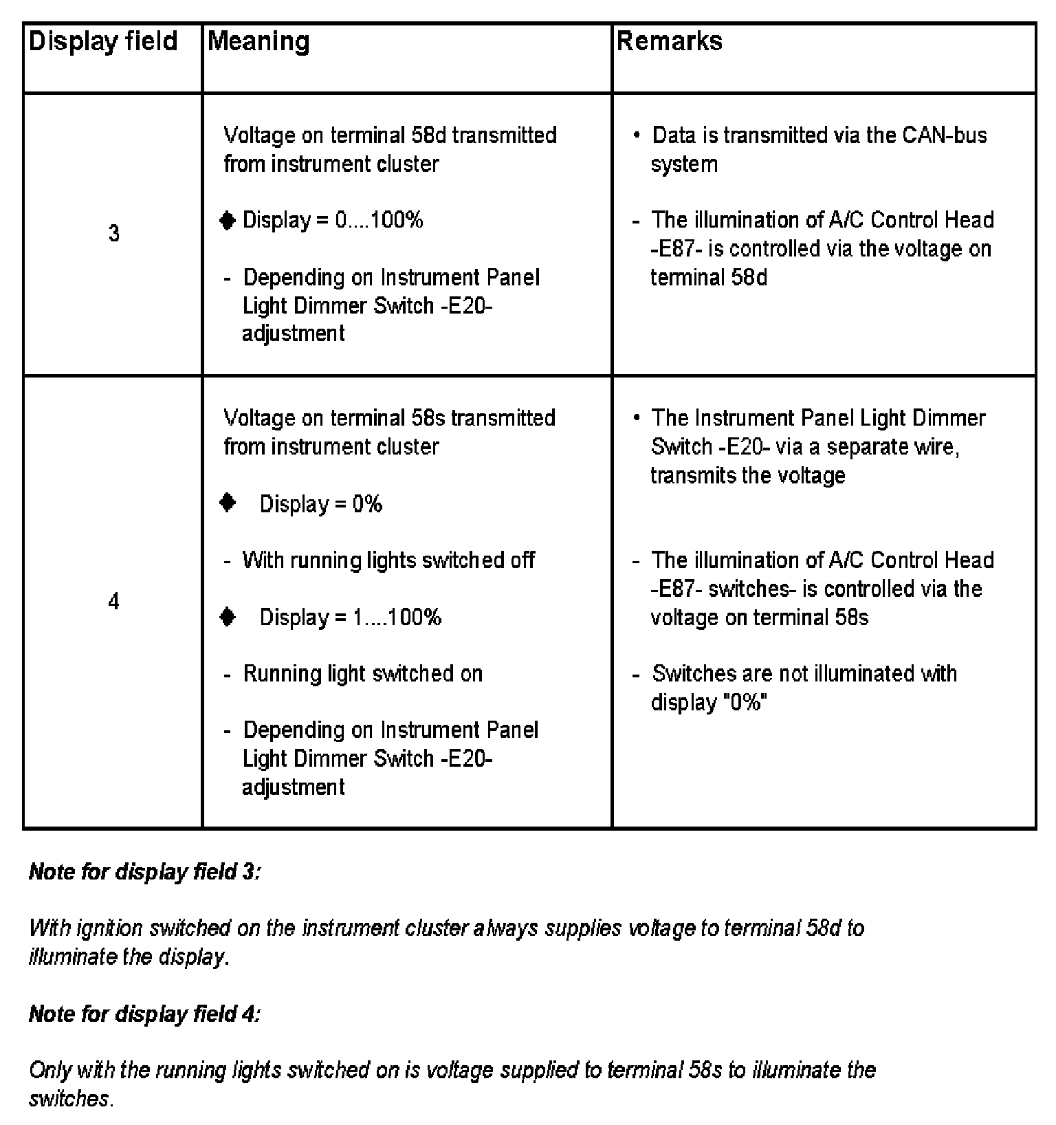 From instrument cluster transmitted voltage on terminal 58d and voltage on terminal 58s actual and specified voltage to activate the Fresh Air Blower -V2