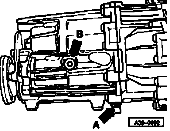 ^ Remove right catalytic converter from rear exhaust system and press rear of catalytic converter toward right.