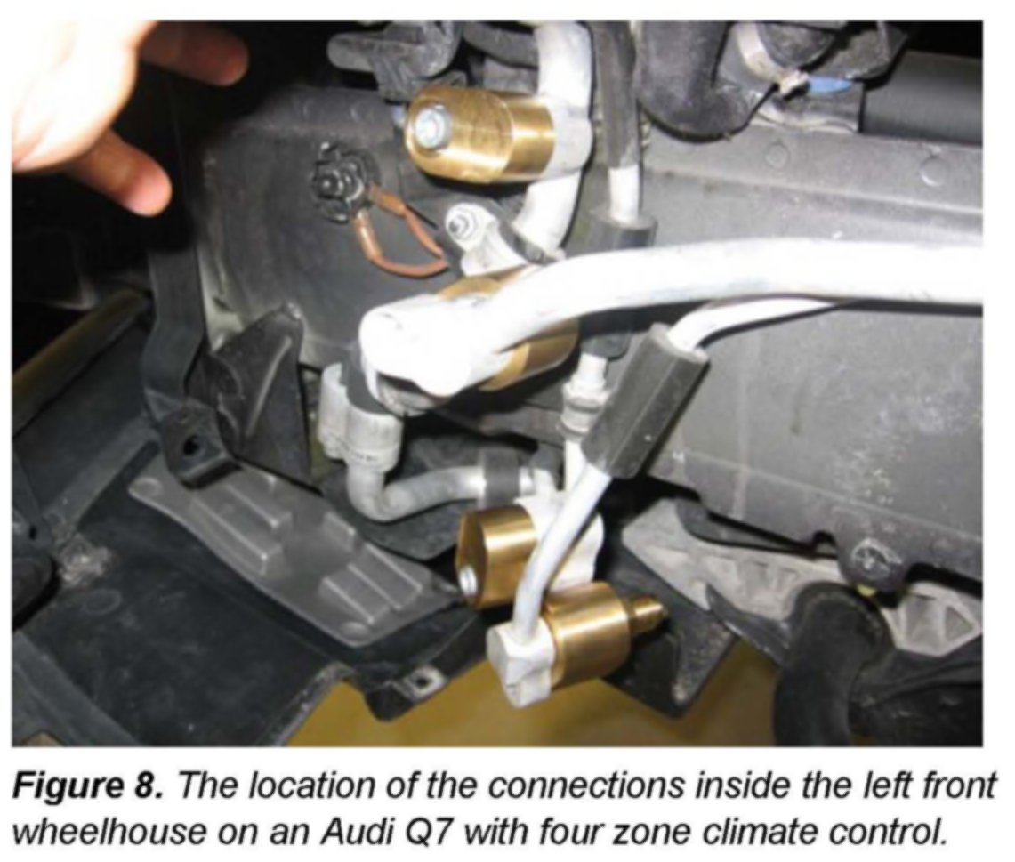 If the vehicle is an Audi Q7 with four zone climate control, the flush process will be repeated for the additional air conditioning unit in the rear according to the repair information in ElsaWeb.
