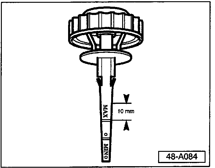 ^ With engine cold (outside temp. approx. +20°C / 68°F) fluid must be at MAX level.