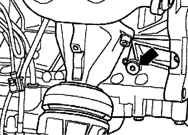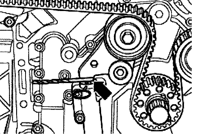 - Using 8 mm Allen key, turn toothed belt tensioning lever in direction of arrow until 7 mm drill bit can be inserted between toothed belt tensioning lever and hydraulic tensioning element.