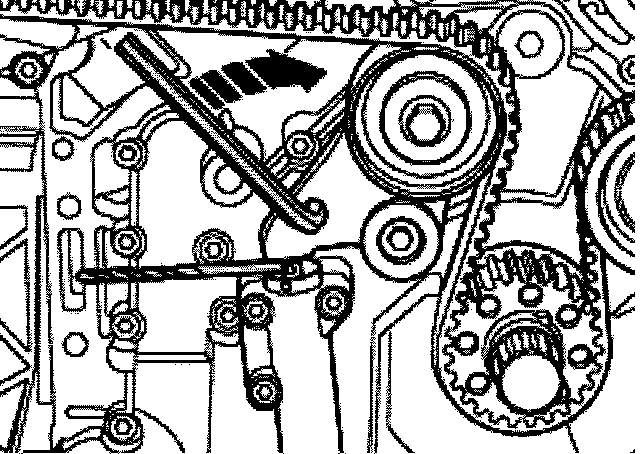 - Mark the direction of rotation of the toothed belt with chalk or felt pen before removing. A used belt can break if it rotates in the wrong direction when reinstalled.