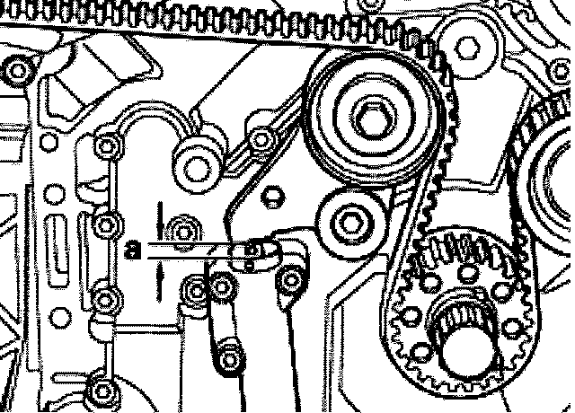 - Measure dimension -a- between toothed belt tensioning lever and hydraulic tensioning element.