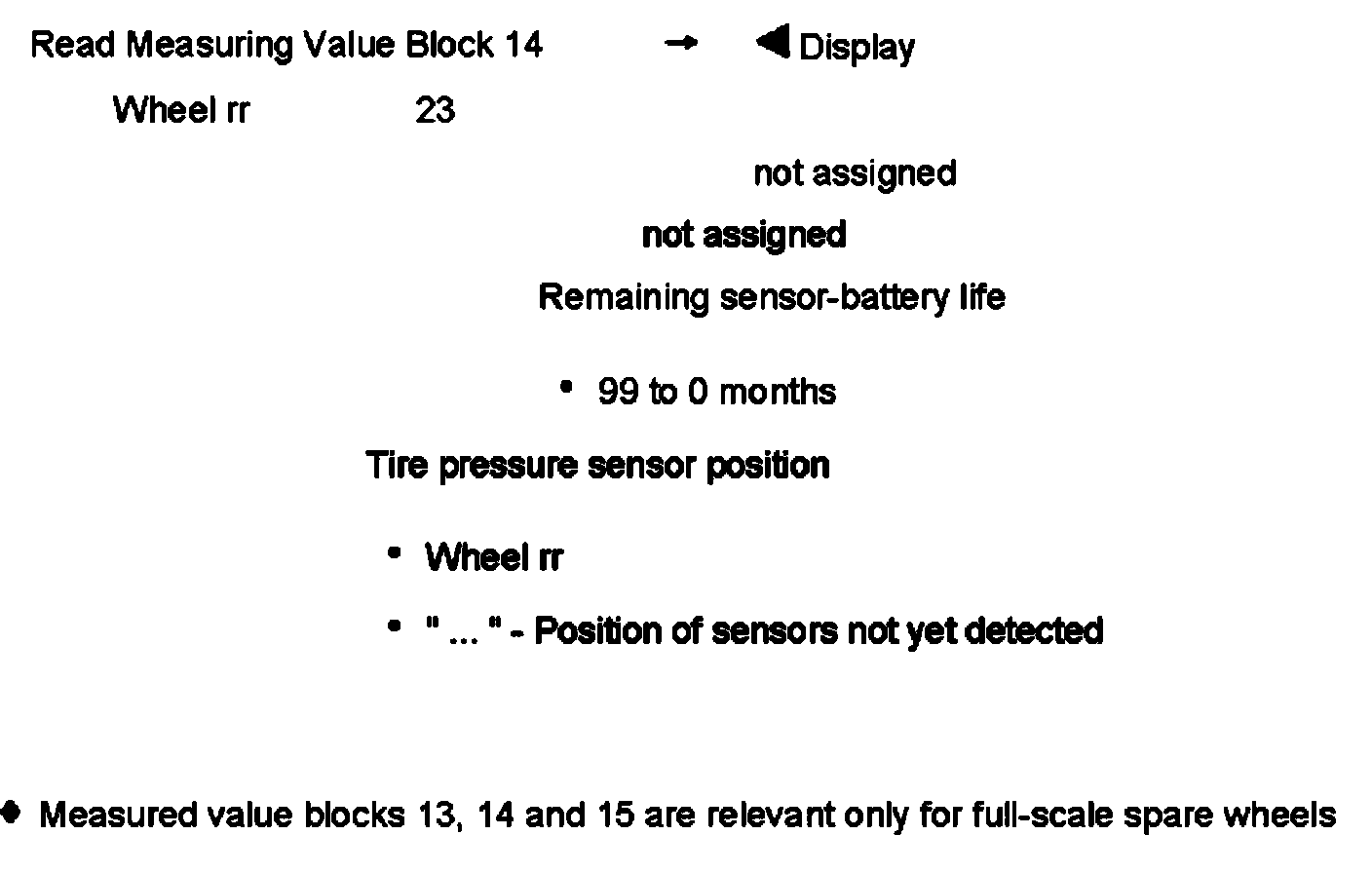 Measured value blocks 13, 14 and 15 are relevant only for full-scale spare wheels