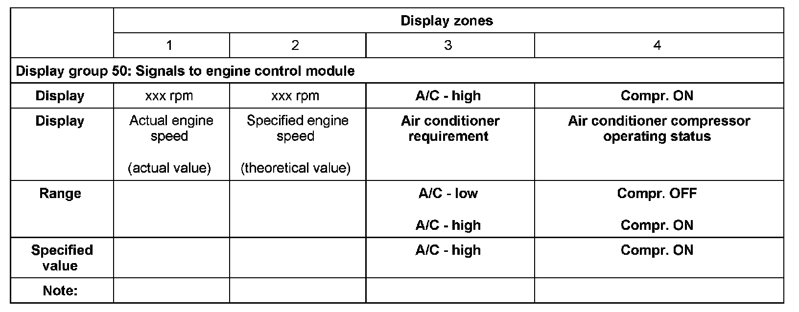- The air conditioning compressor signal informs the engine control module that the compressor will be switched on in 140 ms.