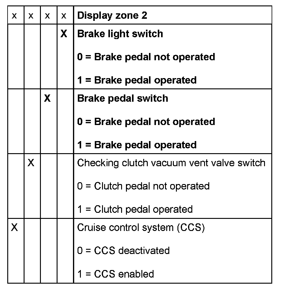 Because the injection system operates with an accelerator pedal sensor (potentiometer) which may be faulty, the engine is regulated for reasons of safety when the brakes are operated. For this purpose, the control module requires signals from both the brake light switch and the brake pedal switch.