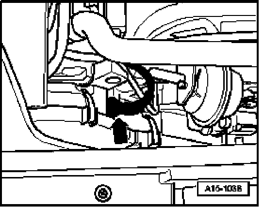 - Camshaft Position (CMP) Sensor -G163- is located at rear of left cylinder head (bank 2). To reach the harness connector, the line to Engine Coolant Level (ECL) Warning Switch at bottom on reservoir must be disconnected, bolts -arrows- of coolant reservoir must be unscrewed and set it aside. Coolant hoses-1- and -2- remain connected.