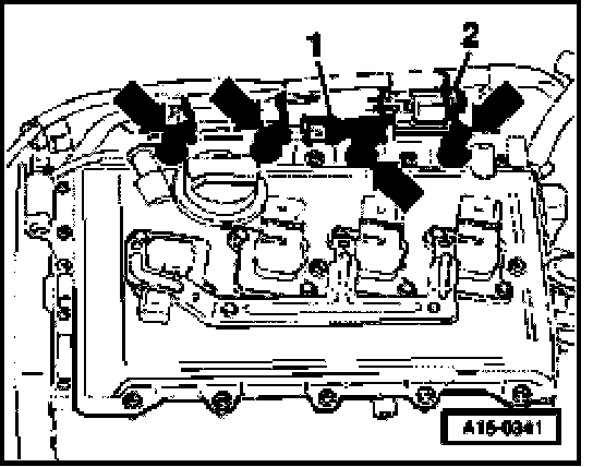 - Remove the engine cover (arrows).