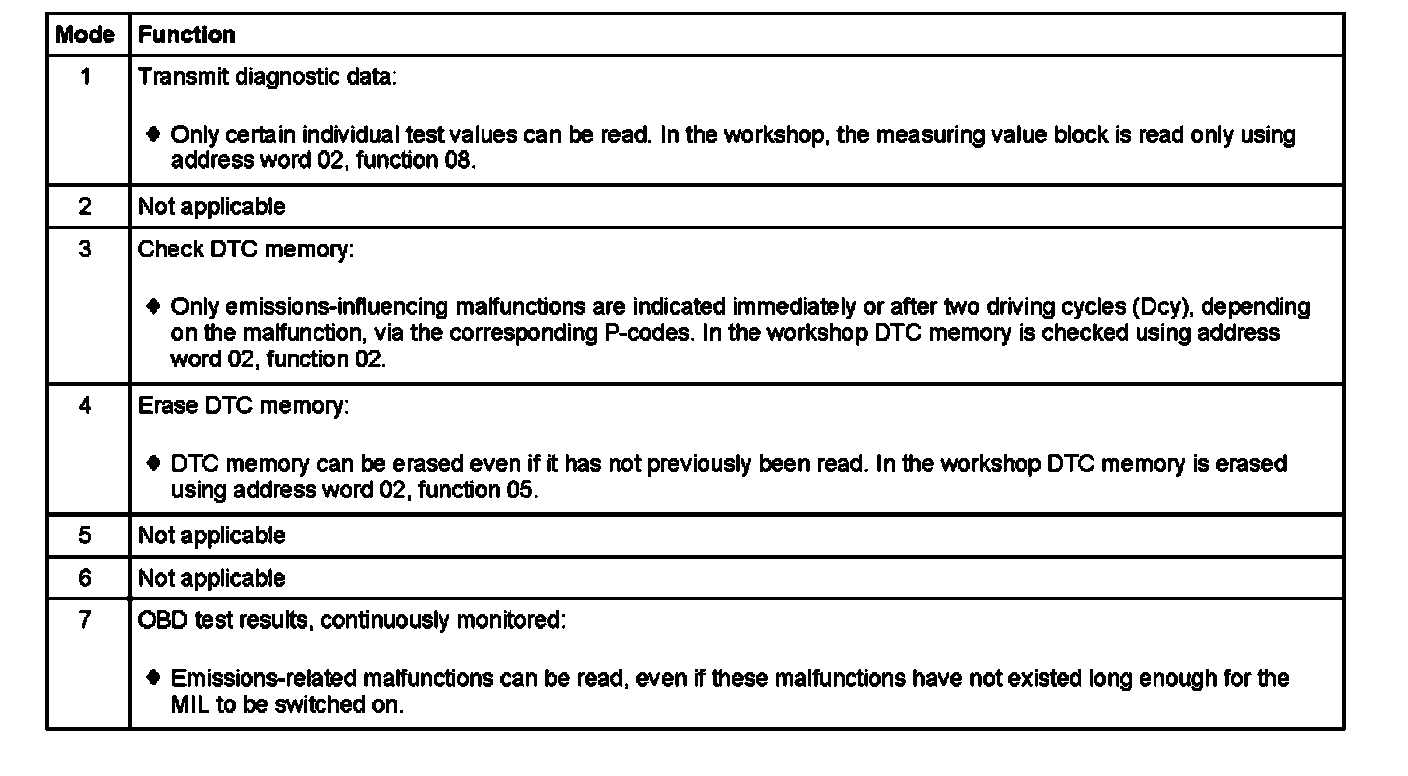 On-Board Diagnostic II (OBD II), functions