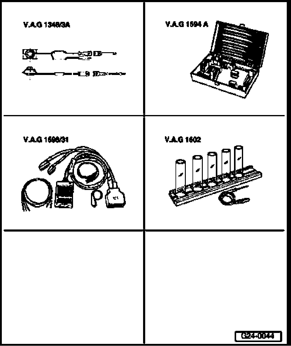 - Insert fuel injector to be tested in a measuring glass from e.g. V.A.G 1602 injection quantity test device.