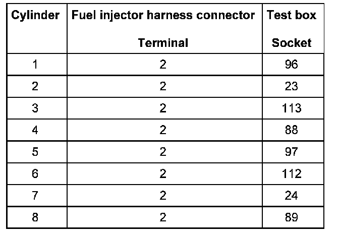NOTE: Voltage is supplied to the fuel injectors via the Fuel Pump (FP) relay.