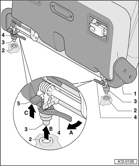 - Pull up both securing levers - 5 -, - arrow C -.